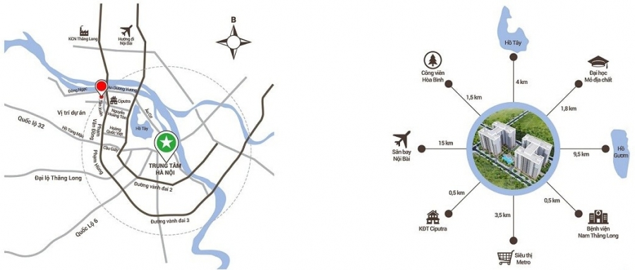 - Vị trí: Tọa lạc tại ô đất xây dựng tại ô đất ký hiệu B4 - CT1 và B5 - CT2 thuộc quy hoạch chi tiết 1/500 khu vực Bắc Cổ Nhuế Chèm, Đông Ngạc, Từ Liêm, Hà Nội.