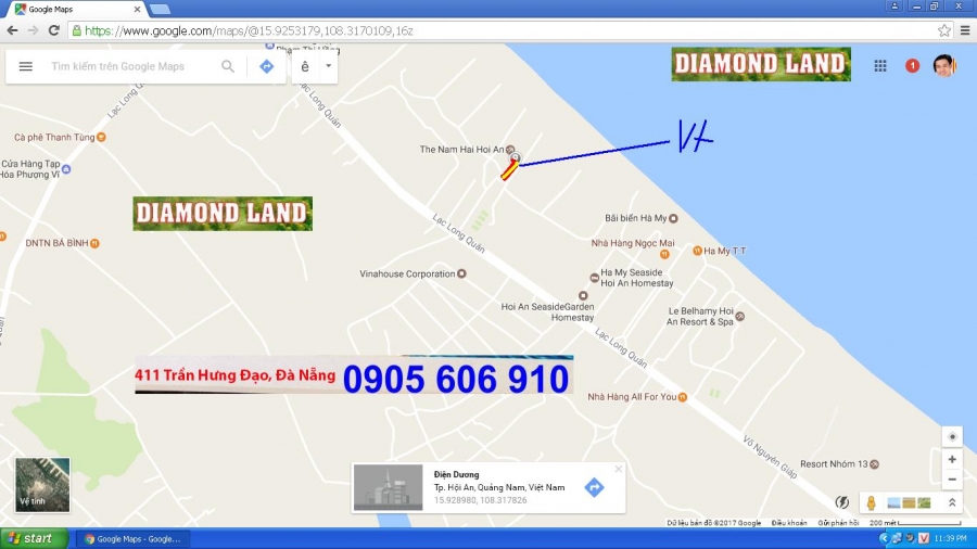 Mặt tiền đường đi vào Hội An, mặt tiền còn lại đi thẳng ra bãi tắm Hà My.