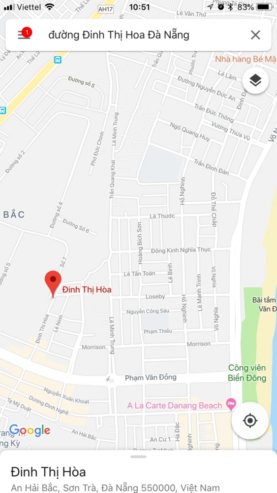 Bán 2 lô đôi đất biển đường Đinh Thị Hòa,Đà Nẵng 180 m2 cách đường Phạm Văn Đồng 500m