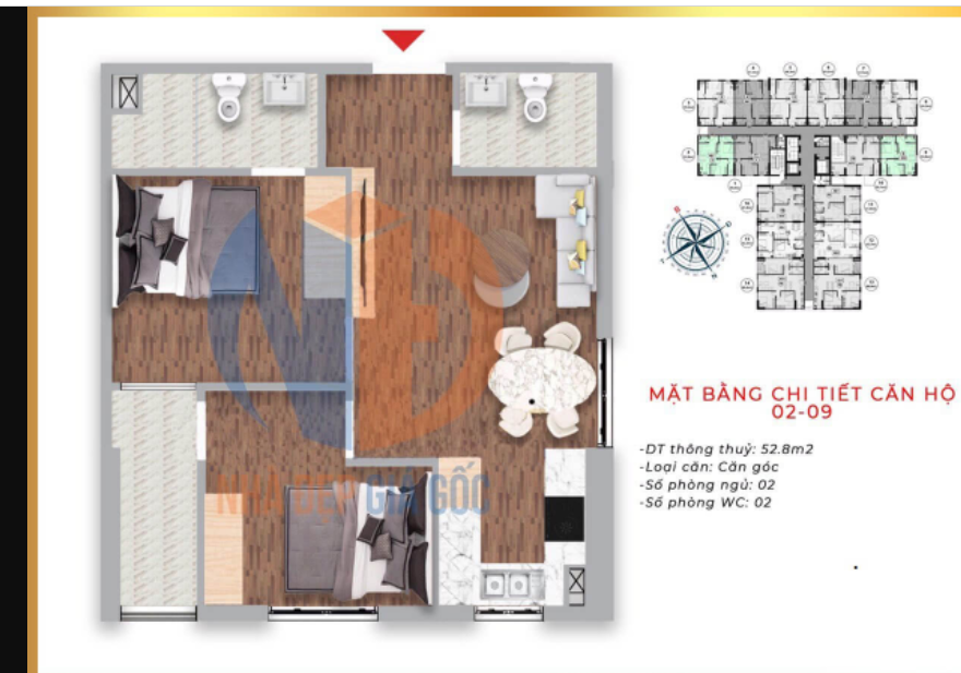 Căn 2 ngủ 2 vệ sinh từ 54m2 - 57m2 - 62m2 - 64m2 chỉ 1.3-1.5 tỷ (full thuế phí, sổ về tay).