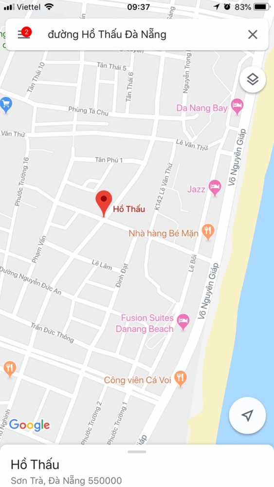 Đường Hồ Thấu là đường 11 m5 đi thẳng ra biển, đường Đinh Đạt là đường 7m5.