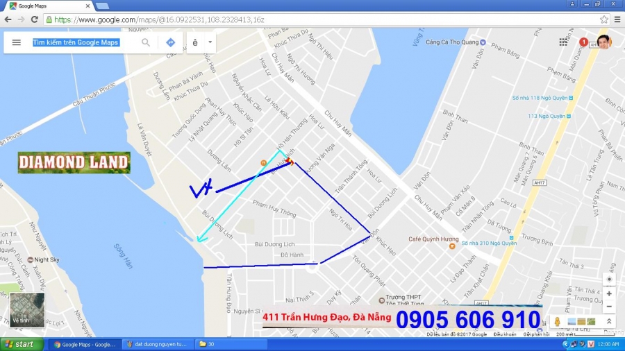 Vị trí : cách Sông Hàn 250m,gần đường Vân Đồn.Khu hầm chui 4.700 tỷ đi qua.