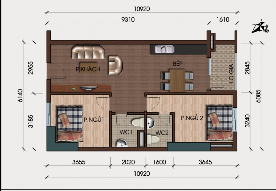 Thông tin căn hộ: Diện tích: 67.04m2, 2PN, view đẹp, không gian thoáng mát, quý 3 bàn giao nhà.