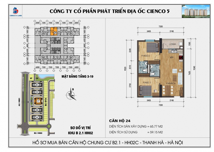 - Diện tích sử dụng 65.77 m2