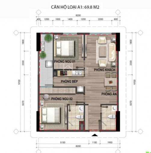 + Diện tích 70 m2, 2 phòng ngủ, 2 vệ sinh.