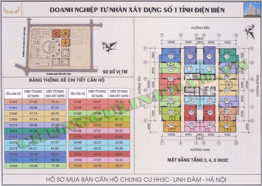 Căn 406 HH3C Diện tích: 65.52 m2.