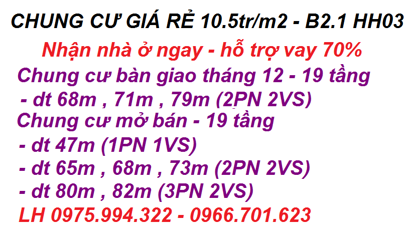 Bán căn hộ giá rẻ Hà Đông – 250 triệu- 2 ngủ-2 vệ sinh- vay ngân hàng 70%. Liên hệ em Quỳnh: 0966701623