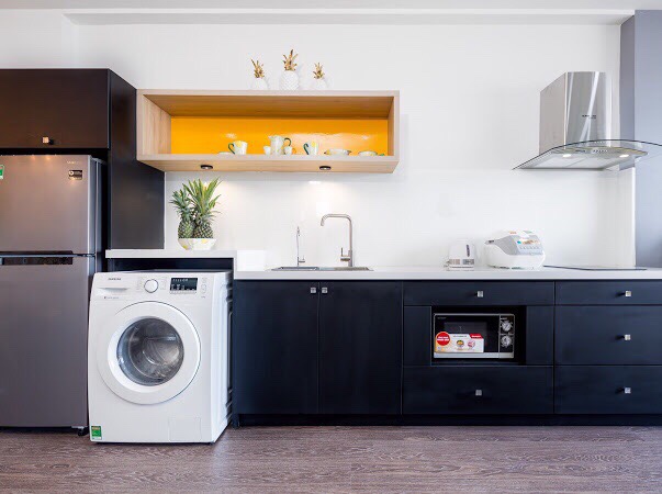 Căn hộ full nội thất chỉ xách vali vào ở bao gồm: Tivi, tủ lạnh, máy giặt, bàn ăn, sofa, giường đệm, rèm, máy lạnh... và một số đồ gia dụng khác tùy vào nhu cầu của khách thuê.