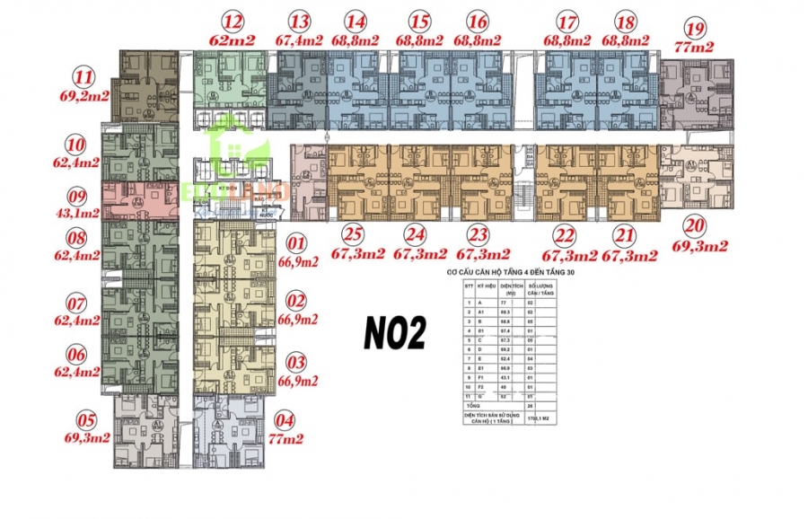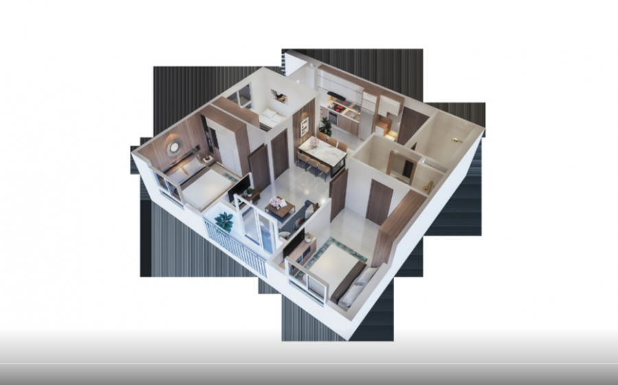 - Căn hộ 3 phòng ngủ 2 vệ sinh: 69m2 - 77m2.