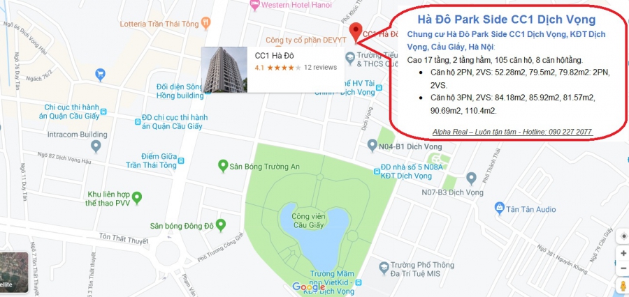 Một số tòa Chung cư quận Cầu Giấy Alpha Real đang cho thuê: