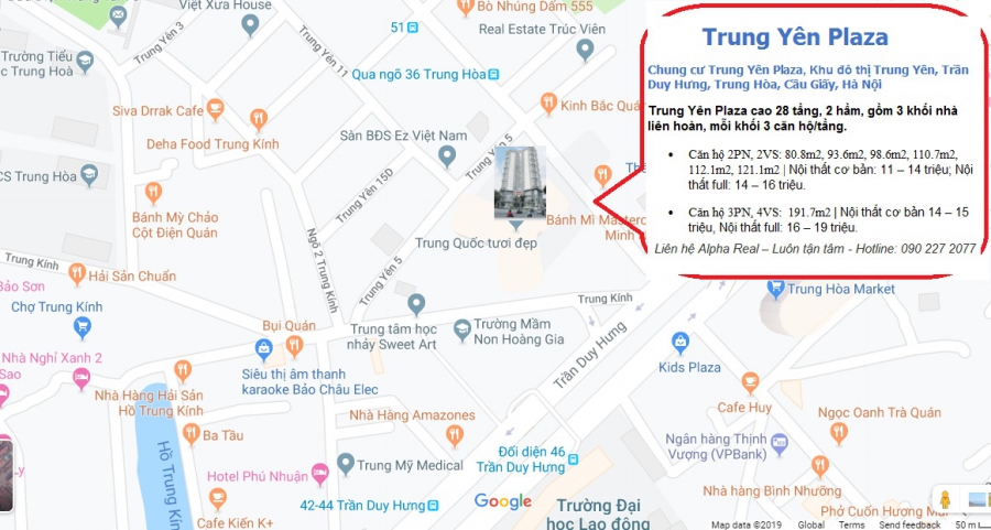 - Cho thuê Căn hộ Chung cư 1105 – Trung Yên Plaza, Khu đô thị mới Trung Yên, Trung Hòa, Cầu Giấy, Hà Nội: 191.7m2, 3PN, 4VS, Nội thất cơ bản, giá 15.5 triệu. Hướng cửa Đông, Căn góc 3 mặt thoáng, View Trung tâm Hội nghị Quốc gia, Trần Duy Hưng… | LH: 0902272077