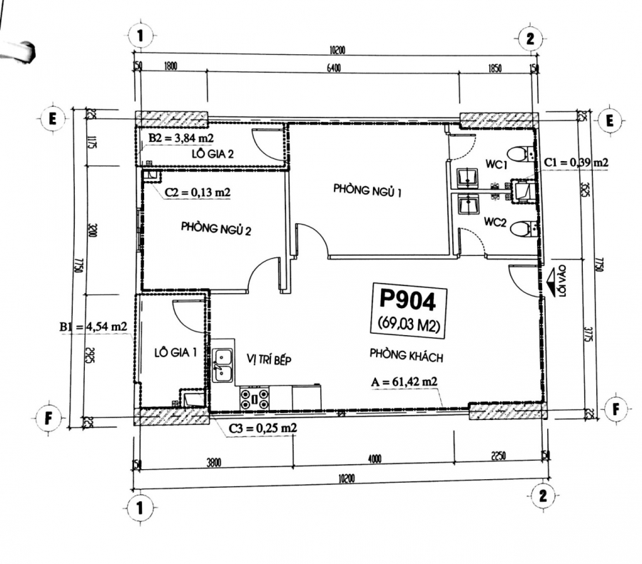- 3 căn trục 02, 03 và 04: diện tích 69,03m2, hướng tây tứ mệnh, view sông Hồng, 2 lô gia.