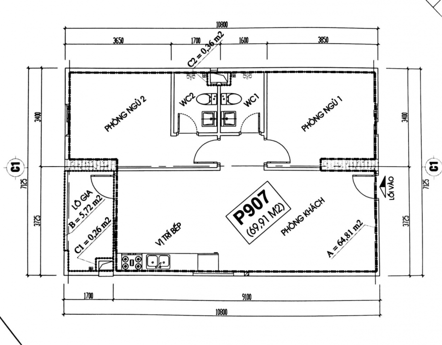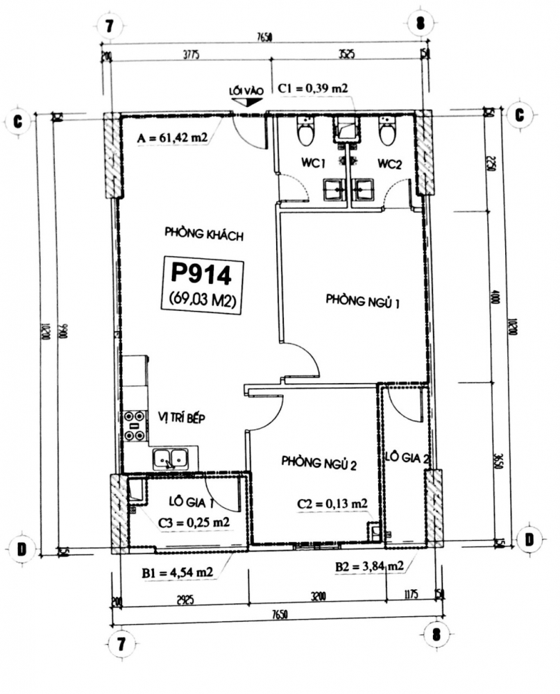 - 3 căn trục 14 và 15: Diện tích 68,86 m2, hướng Đông tứ mệnh.