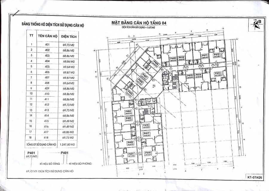 - 4 căn trục 06 và 07: Diện tích 69,99 m2, hướng tây tứ mệnh