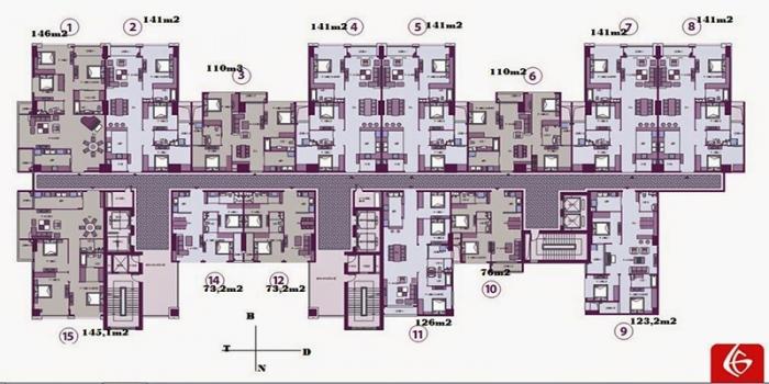 - Diện tích căn hộ tòa A: 73m2 – 76m2 – 110m2 – 123,2m2 – 126m2 – 141m2– 145m2 – 146m2