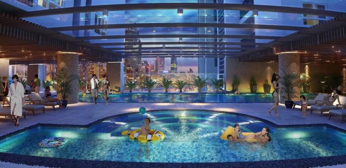 Tầng 5 của Hồ Gươm Plaza có hệ thống bể bơi 4 mùa. bên cạnh đó là phòng sinh hoạt cộng đồng, khu vui chơi trẻ em…