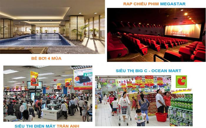 - Tầng 1 đến 4 là trung tâm thương mại dịch với các dịch vụ, chăm sóc sức khỏe….