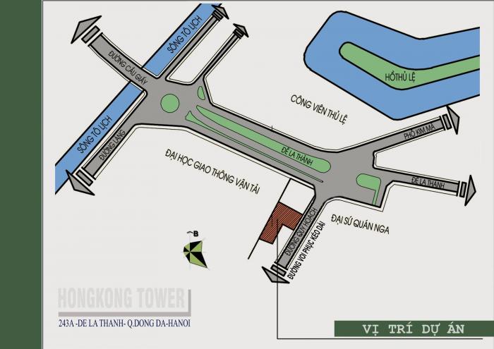 Vị trí dự án chung cư Hongkong Tower: tọa lạc tại số 243A Đê La Thành thuộc Quận Đống Đa , TP.Hà Nội. Đây là dự án có vị trí vô cùng đắc địa nằm ngày trung tâm văn hóa, kinh tế, cùng các trung tâm cơ quan đầu ngày nhà nước:
