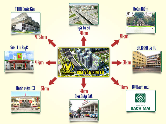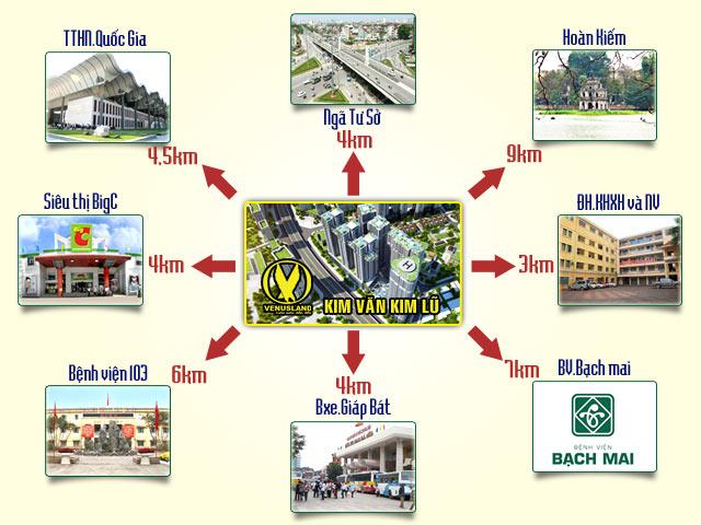 Tọa lạc tại địa điểm thuận lợi, chung cư Kim Văn Kim Lũ với đặc điểm vị trí dự án như sau: