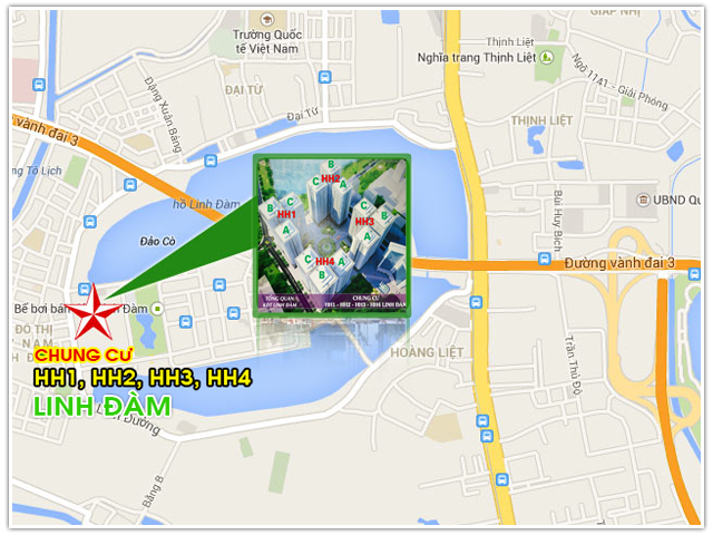 - Từ Chung cư HH1, Chung cư HH2 Linh Đàm, HH3, HH4 Linh Đàm mọi cư dân sẽ vô cùng tiện lợi để đi lại bởi hệ thống giao thông thuận lợi với đường cao tốc trên cao cùng các tuyến đường chính nối liền các quận Cầu Giấy, Thanh Xuân, Hoàng Mai... giúp di chuyển thuận lợi đến các khu vực trung tâm của thủ đô như: BigC Thăng Long, SVĐ Mỹ Đình, bến xe Giáp Bát, cầu Chương Dương, ... cũng như di chuyển tới các tỉnh thành lân cận phía Nam của thủ đô.