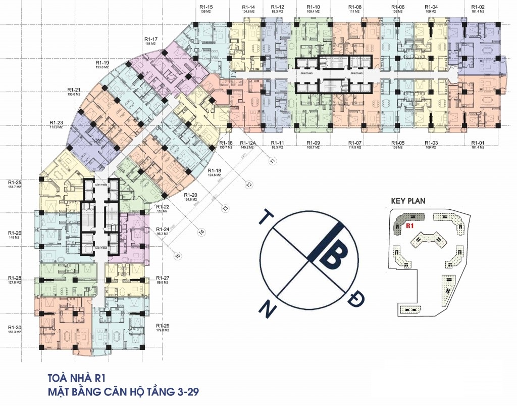 Mặt bằng căn hộ Royal City - Tòa R1