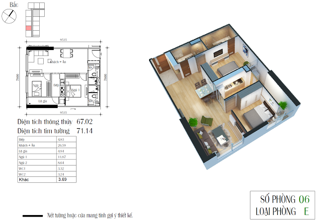 2. Khách hàng không vay NH hoặc không sử dụng gói ưu đãi 0% được chiết khấu 2,5%/tổng giá trị căn hộ
