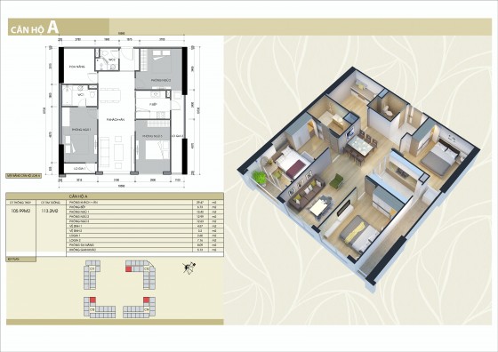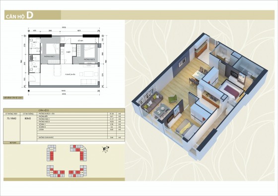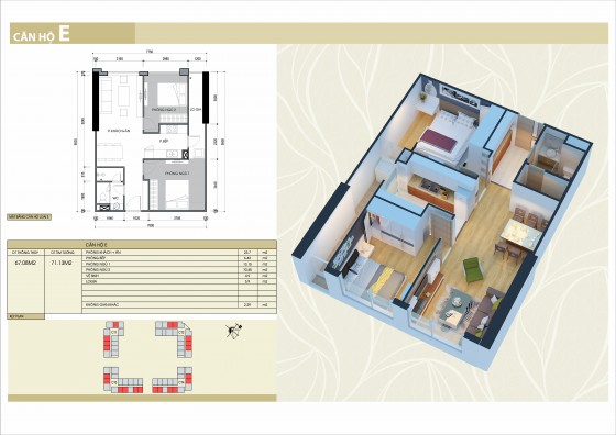 - Diện tích căn hộ 2 phòng ngủ: 67m2-74m2 - 80m2 – 95m2