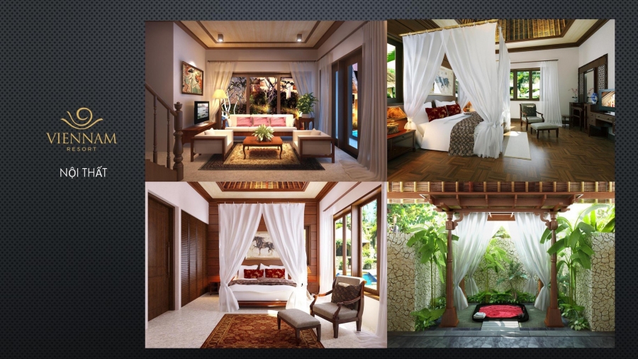 Viên Nam Resort với loại diện tích xây dựng mỗi lô biệt thự 500m2 được thiết kế theo phong cách thượng lưu: Sân vườn, bể bơi, bể sục, chòi nghỉ spa, chỗ đỗ xe, biệt thự nghỉ dưỡng, sân vườn,...