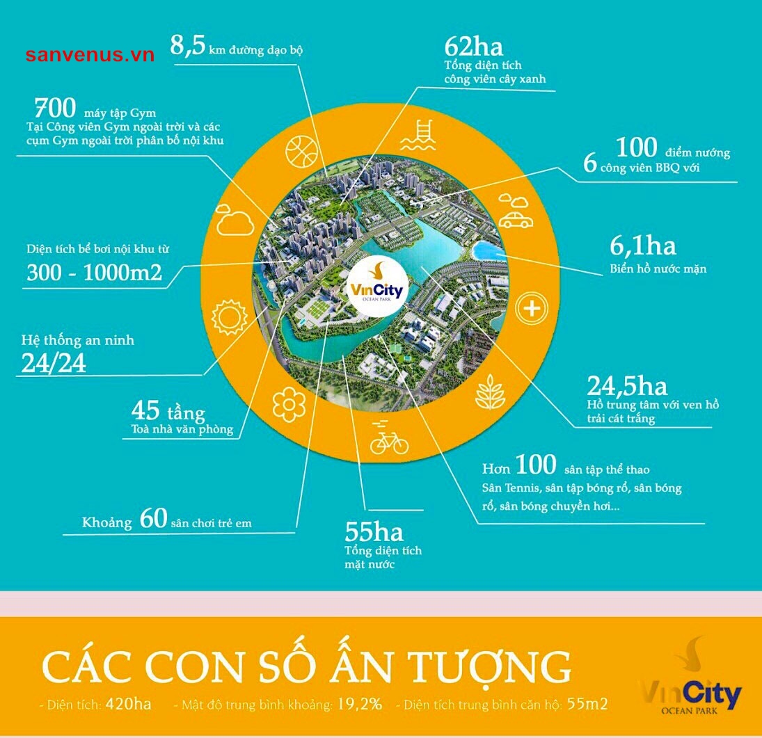 Dự án Vincity Ocean Park Gia lâm được quy hoạch với tổng diện tích lên đến 420ha với mong muốn trở thành khu đô thị hạt nhân hiện đại, sầm uất với đầy đủ hệ thống dịch vụ tiện ích đẳng cấp, quy hoạch đồng bộ. Đây cũng là khu đô thị có cảnh quan công viên cây xanh và mặt nước lớn nhất (62ha) với diện tích mặt nước khoảng 55ha, trong đó 6,1ha là hồ nước mặt.