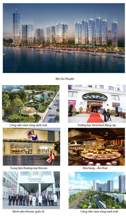 | − Bể bơi tại tất cả các toà căn hộ. | − Công viên ven sông Vinhomes Central Park |
